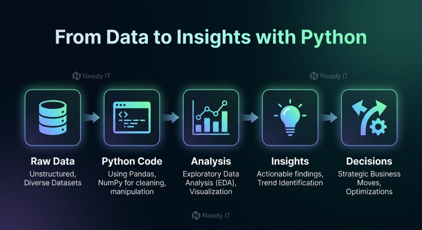 Learn Python for data analysis with this beginner guide. Explore Pandas, NumPy, and Matplotlib to analyze data, build insights, and start your journey with Neody IT.