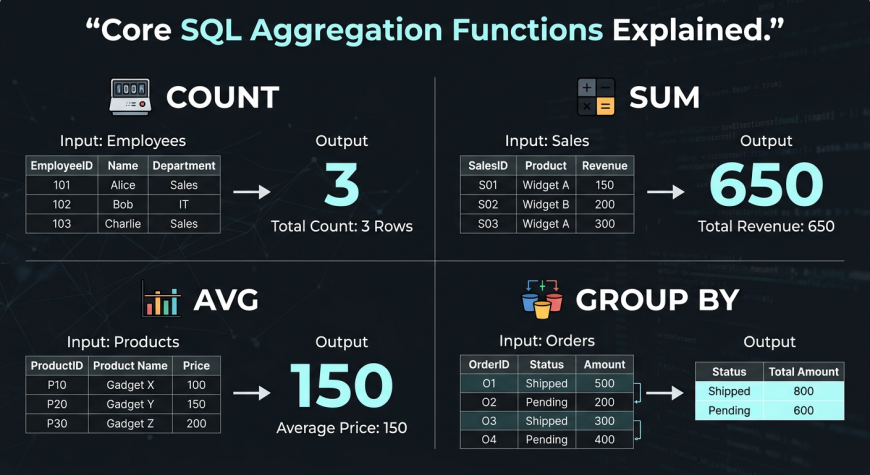 This is why mastering COUNT, SUM, AVG, and GROUP BY is essential for beginners.
