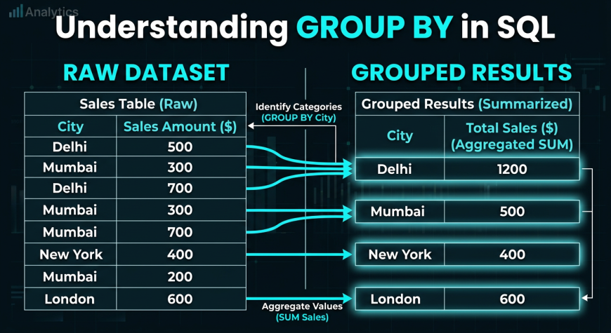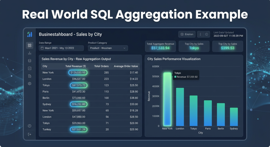Imagine opening a database with thousands of sales records. You see rows filled with numbers, product names, cities, and dates. At first glance, it looks overwhelming. What businesses actually need is not raw rows, but answers like total sales, average order value, and number of customers.